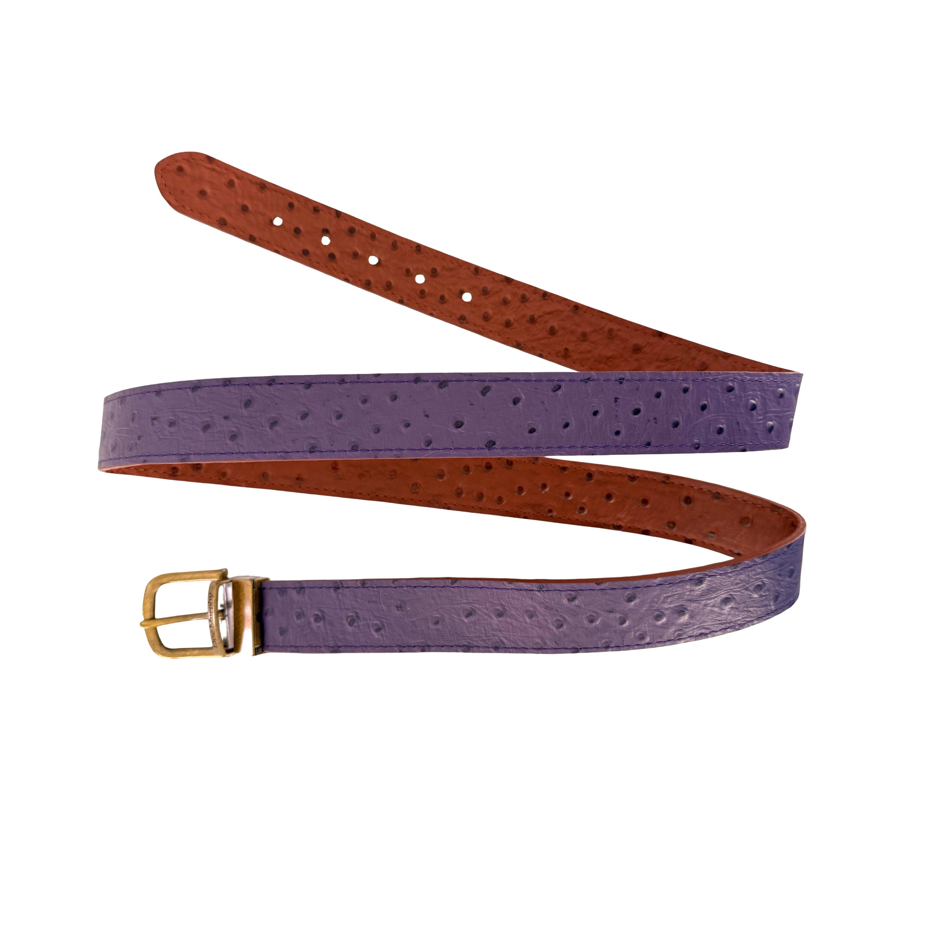 Love purple? Then this is for you, gorgeous purple and classic cognac brown reverse. Cut to Fit sizes 26-42 pant waist.
