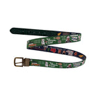 Two of the best on one belt. Clark W. Griswold side in green with a Red Ostrich Tab and Kevin and the Wet Bandits side in Navy with Hunter Gator Tab. This one makes a perfect Christmas gift for your favorite cinephile. Made in the USA. Cut to Fit sizes 26-42 pant waist.
